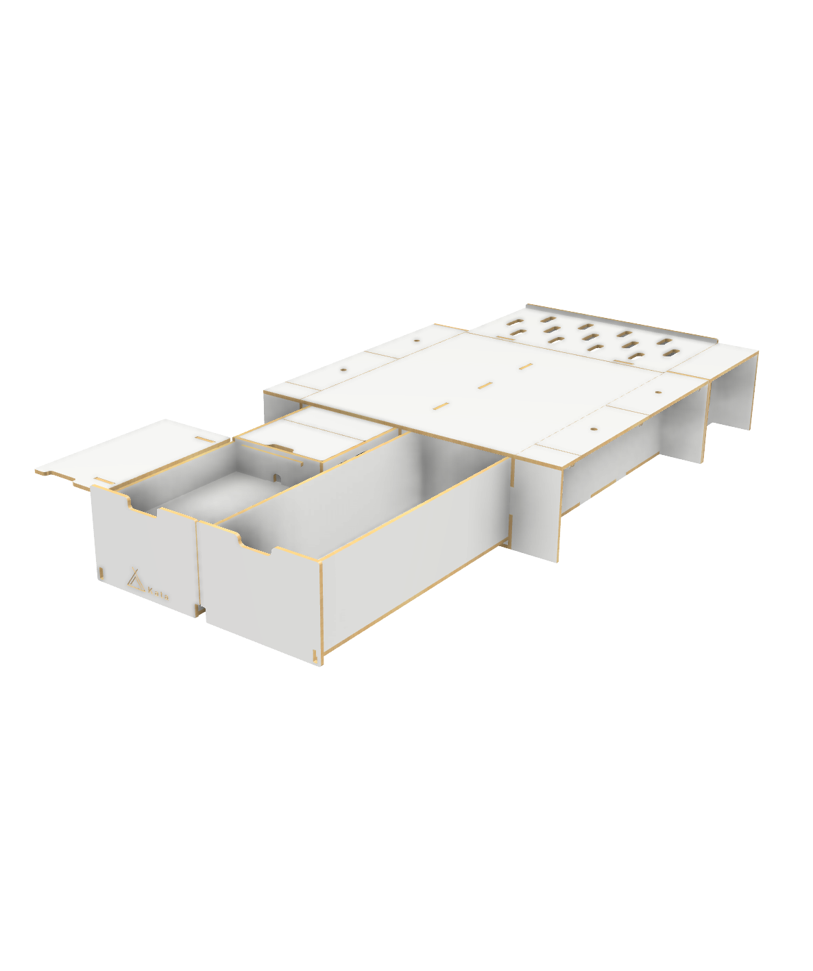 Vanbox is the right fit for big storage needs. Equipped with two spacious drawers on heavy-duty rails, convenience is always within reach. But that’s not all! Our Vanbox is easily transformed into a cozy queen-sized bed and the great perk is that when is shut it only measures 1200mm, so you’ll be able to use your crew seats and have a lot of free space!