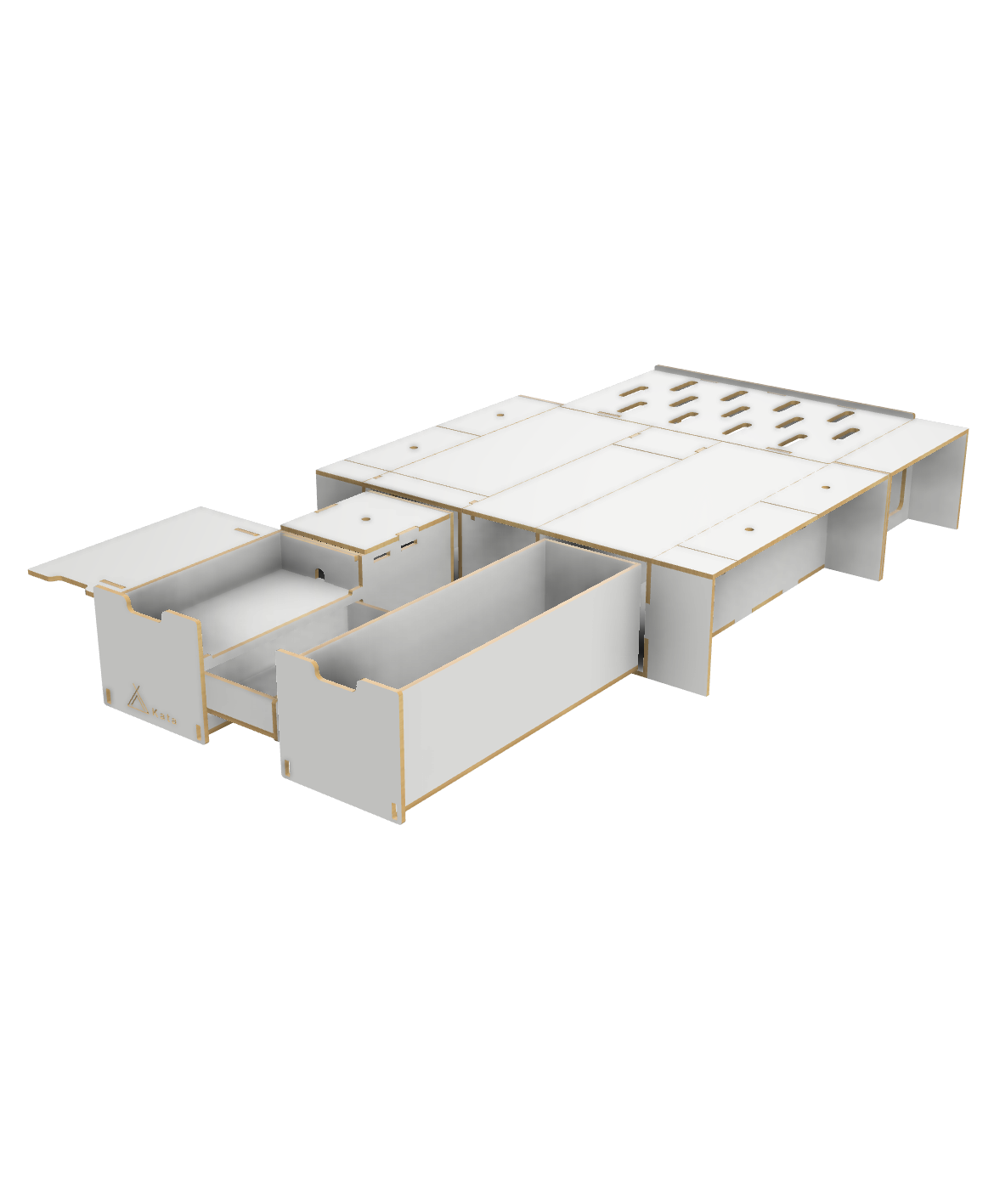 Compact yet versatile, the Vanbox easily transforms into a cozy queen-sized bed with a convenient slide-out frame.