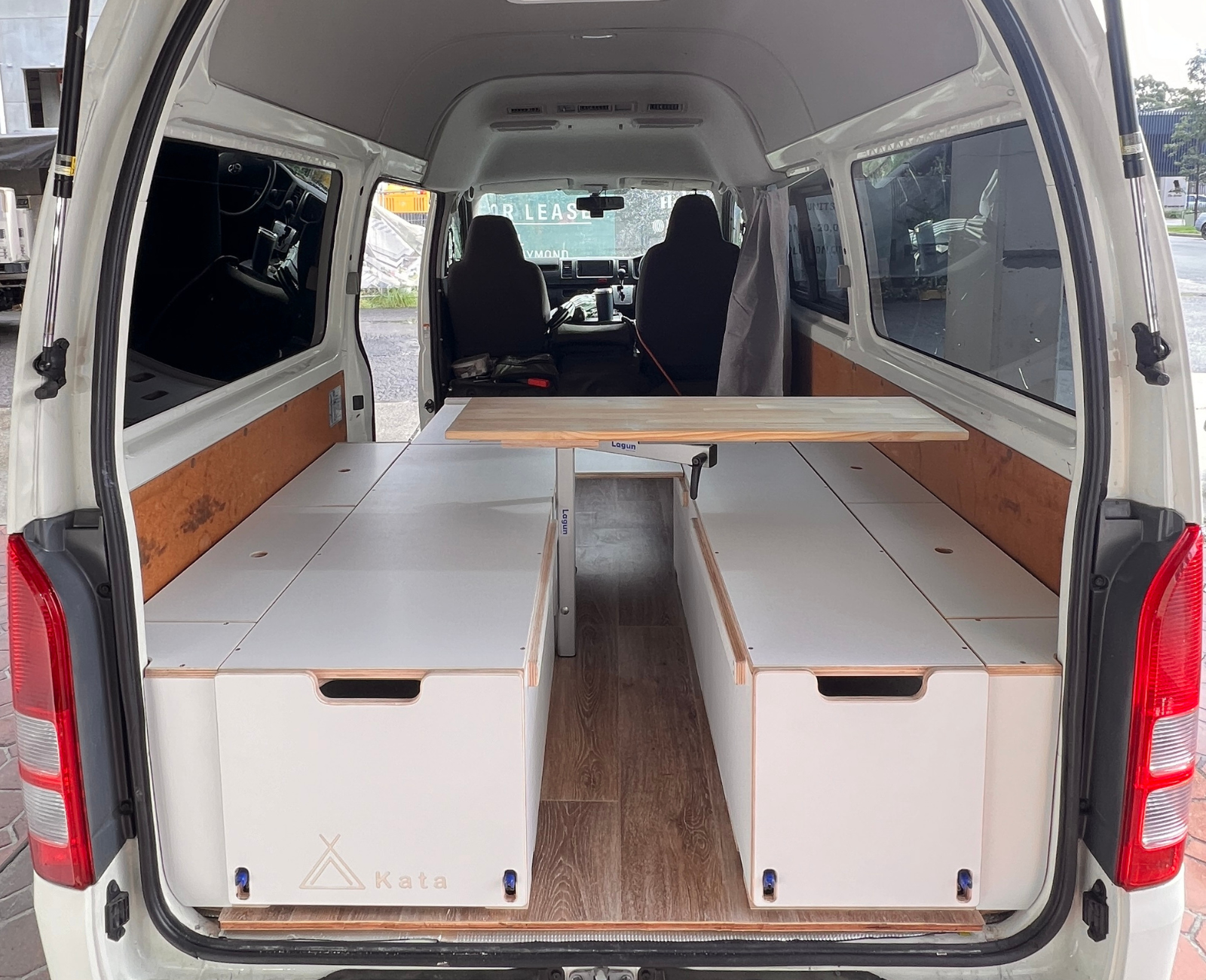 The Vanbox easily transforms into a queen-sized bed with a convenient slide-out frame.