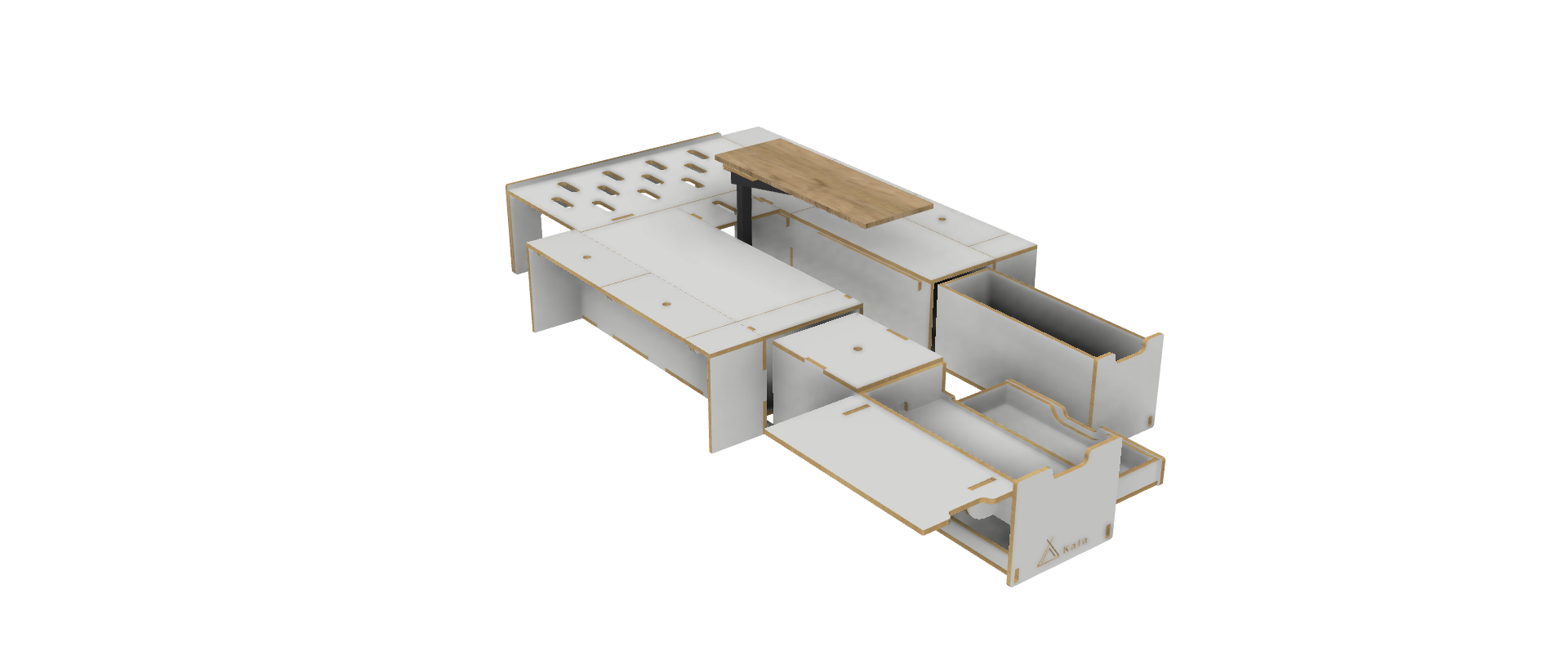 The kitchen drawer includes a cutlery drawer and a fold-out kitchen table.