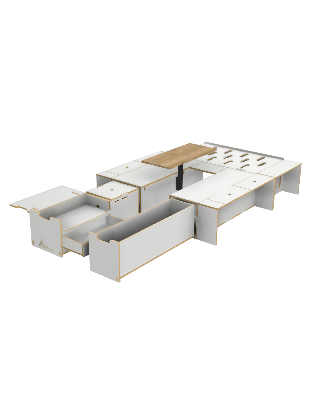 Vanbox is the right fit for big storage needs. Equipped with two spacious drawers on heavy-duty rails, convenience is always within reach. But that’s not all! Our Vanbox is easily transformed into a cozy queen-sized bed and the great perk is that when is shut it only measures 1200mm, so you’ll be able to use your crew seats and have a lot of free space!